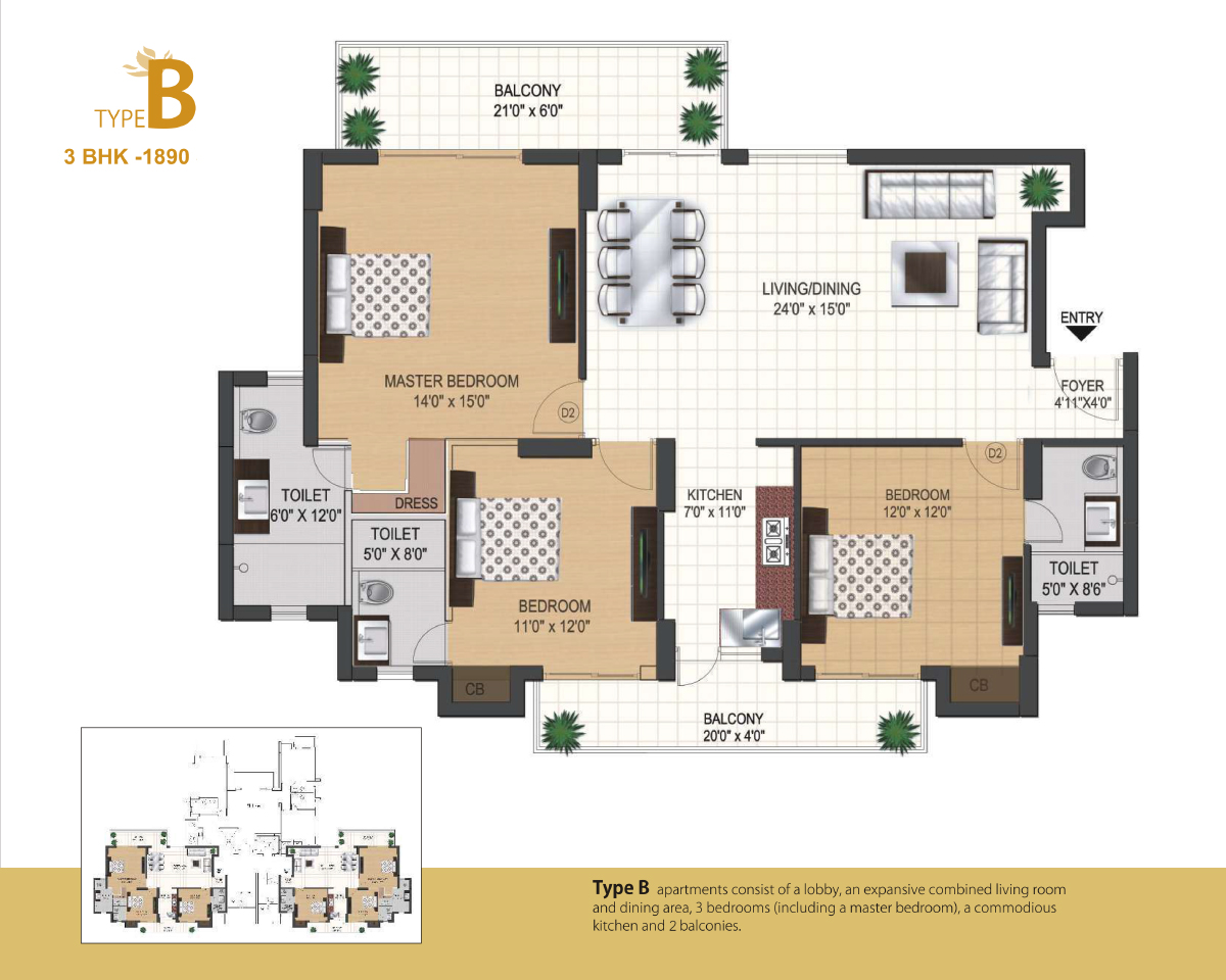 The project offers homes in 2 and 3 BHK apartment configuration.